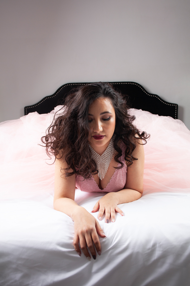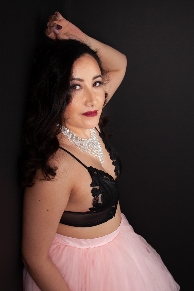 During Magy’s consultation I could tell she was nervous but more than willing to push herself through this challenge. This was going to be a valentine’s day gift for her husband. The day of her session she was shaking with nerves and excitement. Needless to say when she walked out the door her gorgeous head was held high! She did such an amazing job during her session. Her favorite outfit by far was the pink tule skirt (available in our Sparkle Wardrobe). She wanted all of the pictures of her in that skirt!
