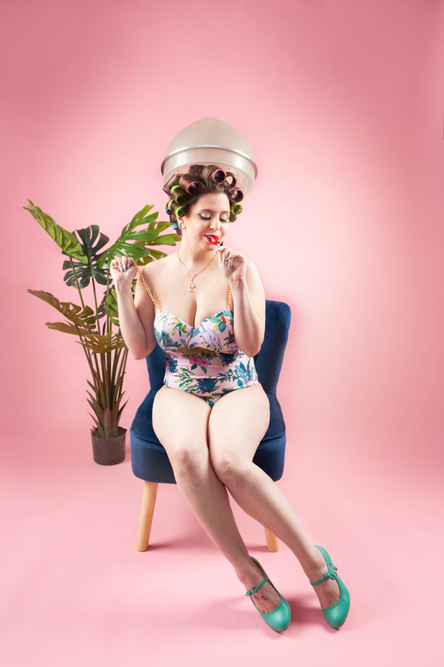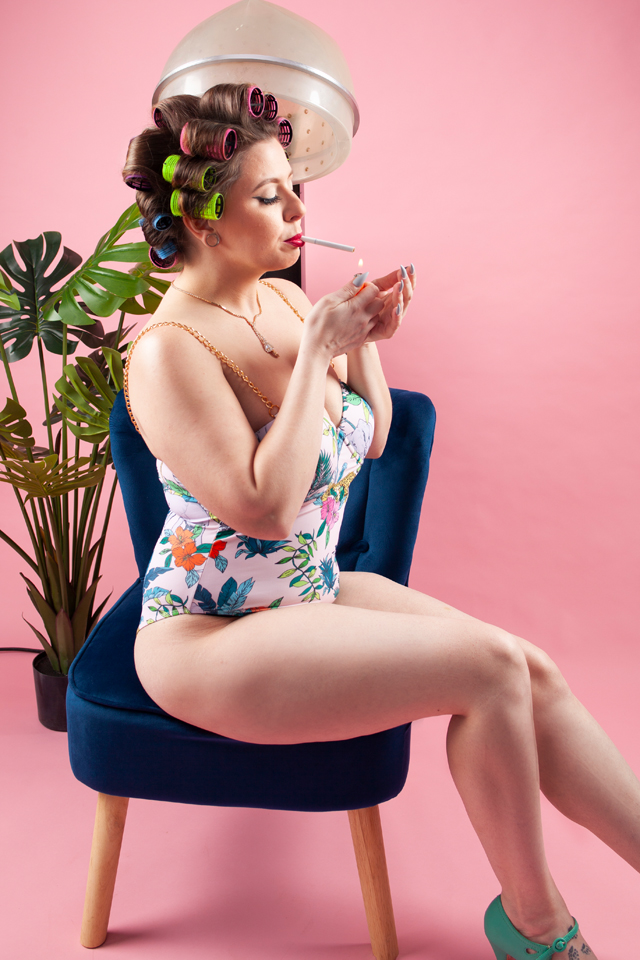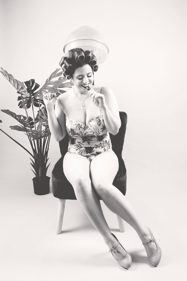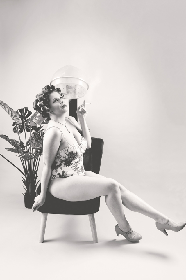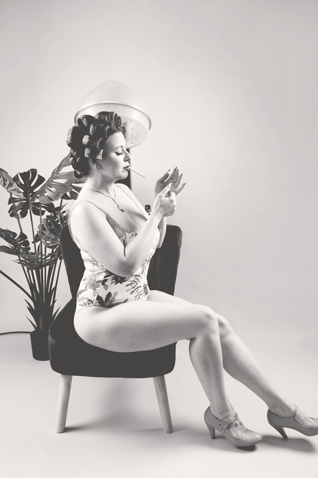 This first outfit I was dying for her to wear. I asked Kathe if she would be ok with doing something more Pinup. Her sweet vintage heart was all in. The shoes for this session were from her personal collection. We had so much fun with this part of the shoot. At one point Terri Kathe’s mom yelled out. “She needs her cigarettes. Someone grab them!” It only added to the vintage nature of the shoot.