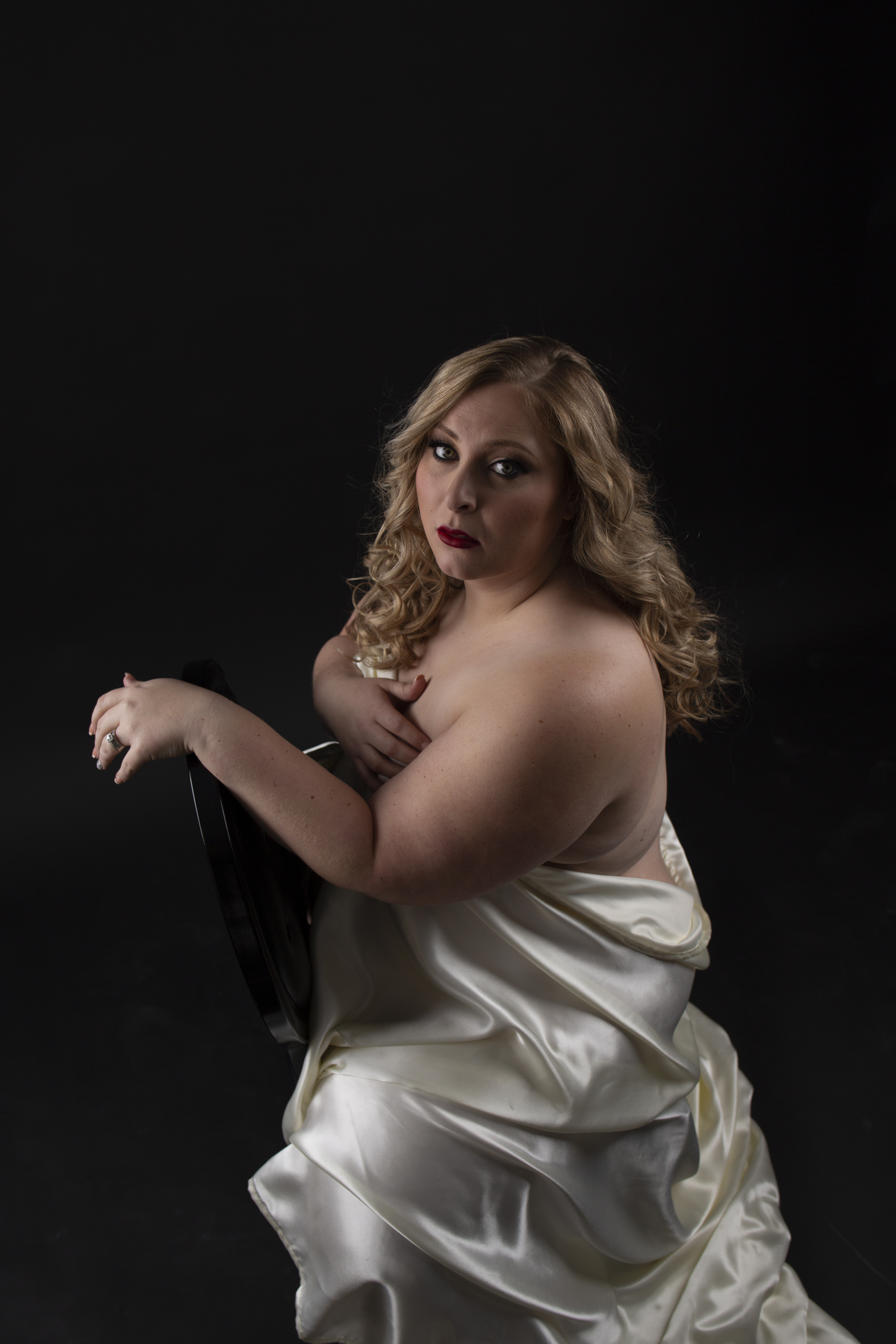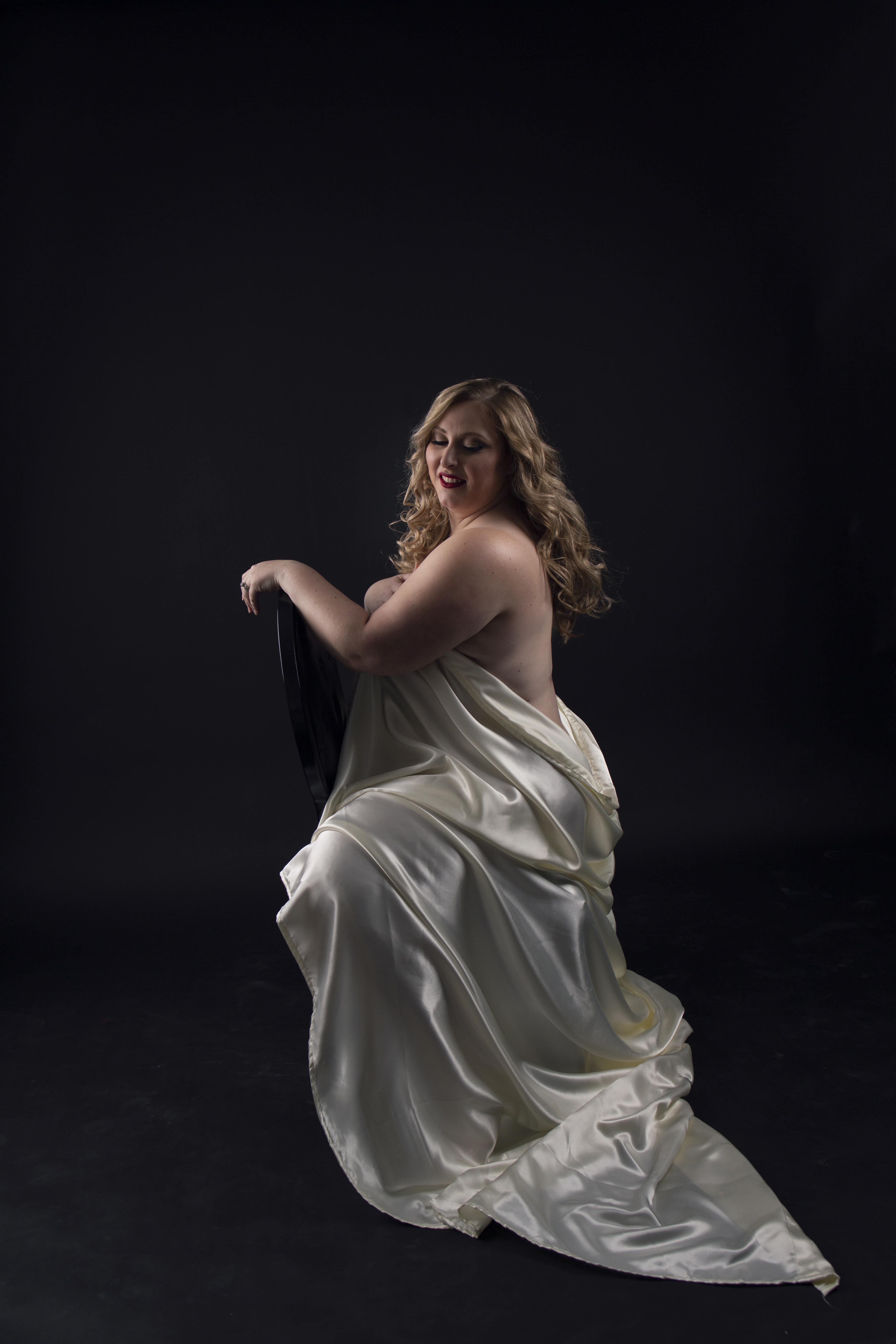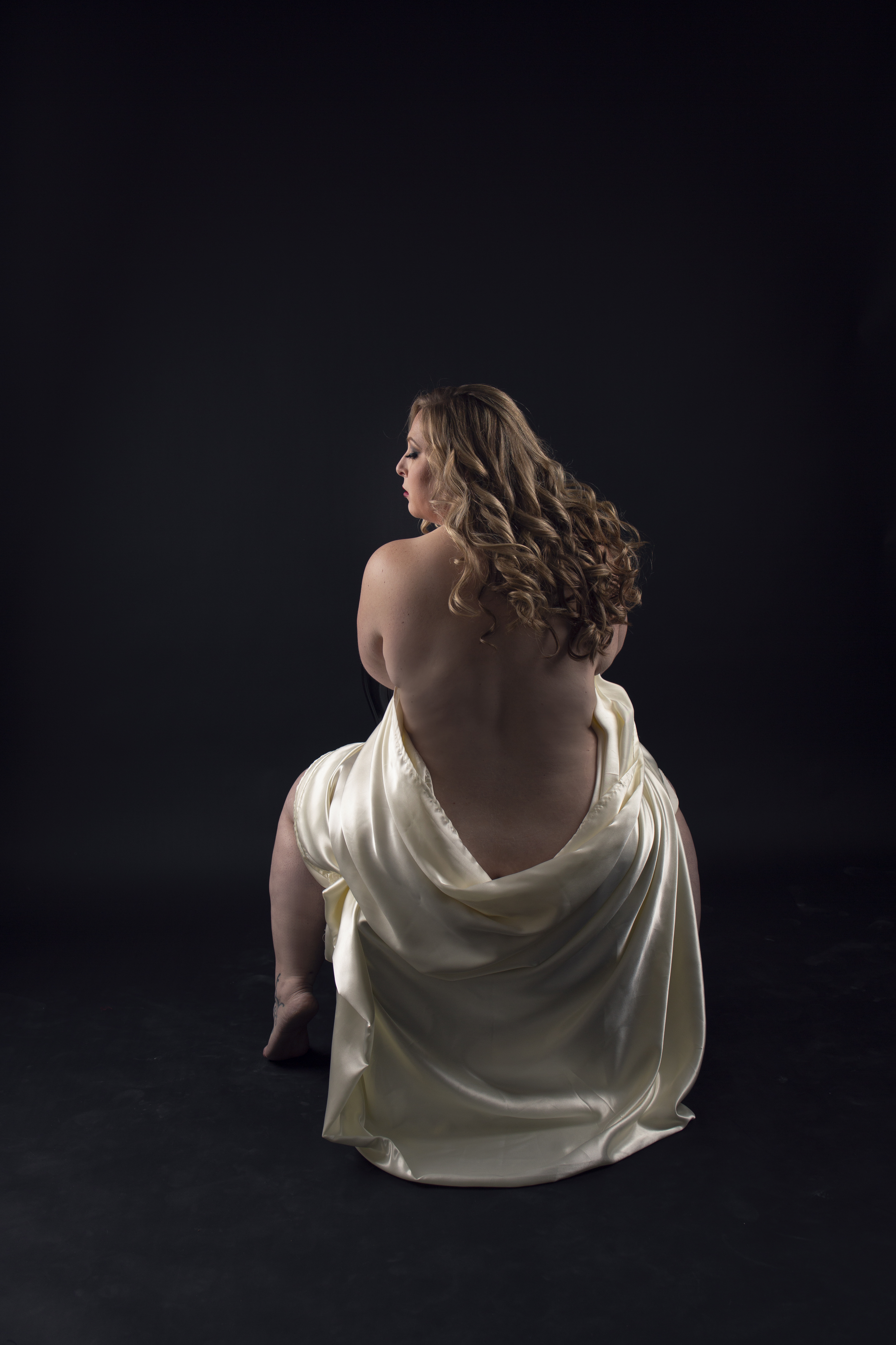 We are bringing to you our client’s favorite outfit! Just the sheet! There is nothing sexier than a woman wrapped in a satin sheet. The best part is you don’t have to purchase an outfit. Choose from our mirrored wall with a chaise or a black backdrop.
