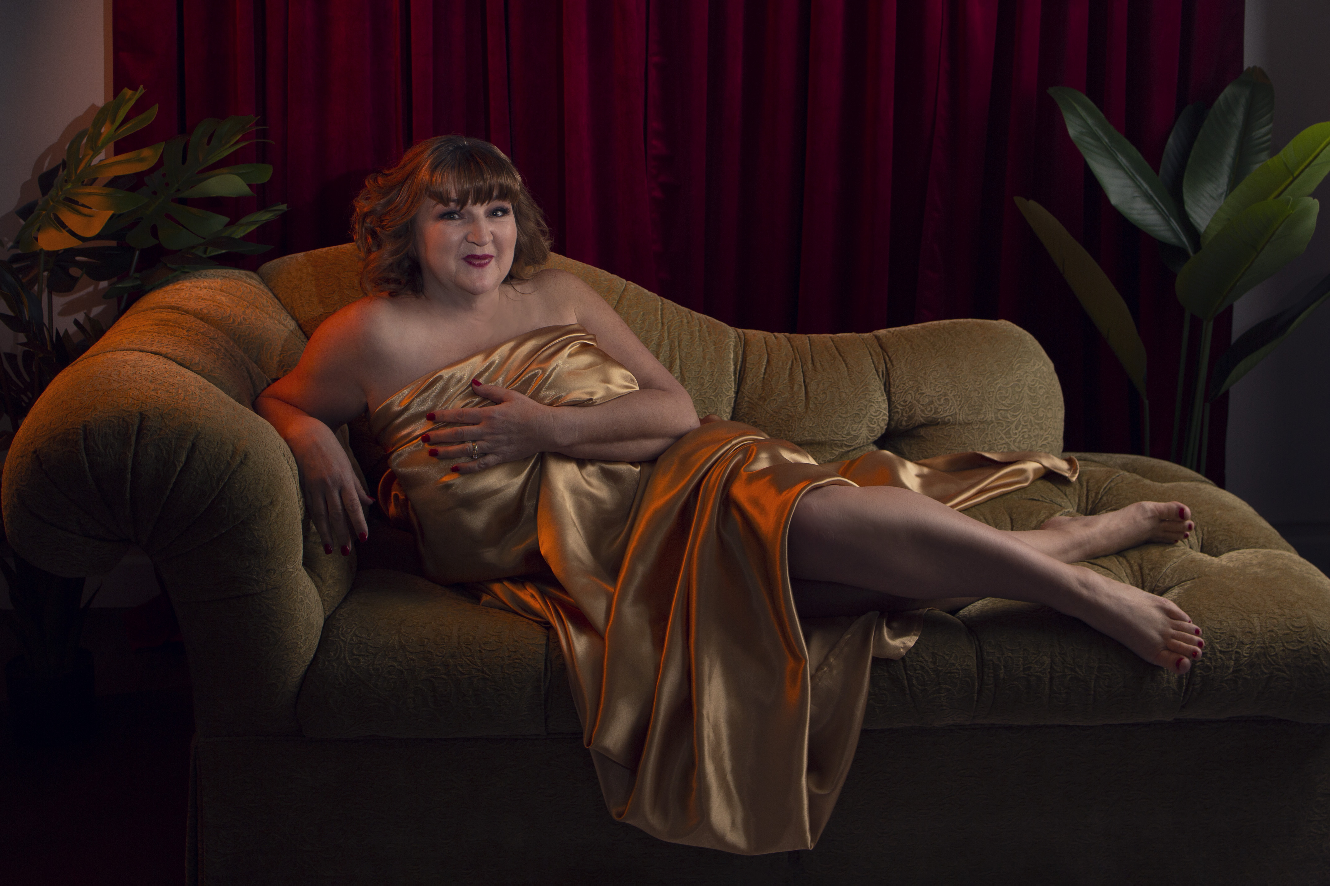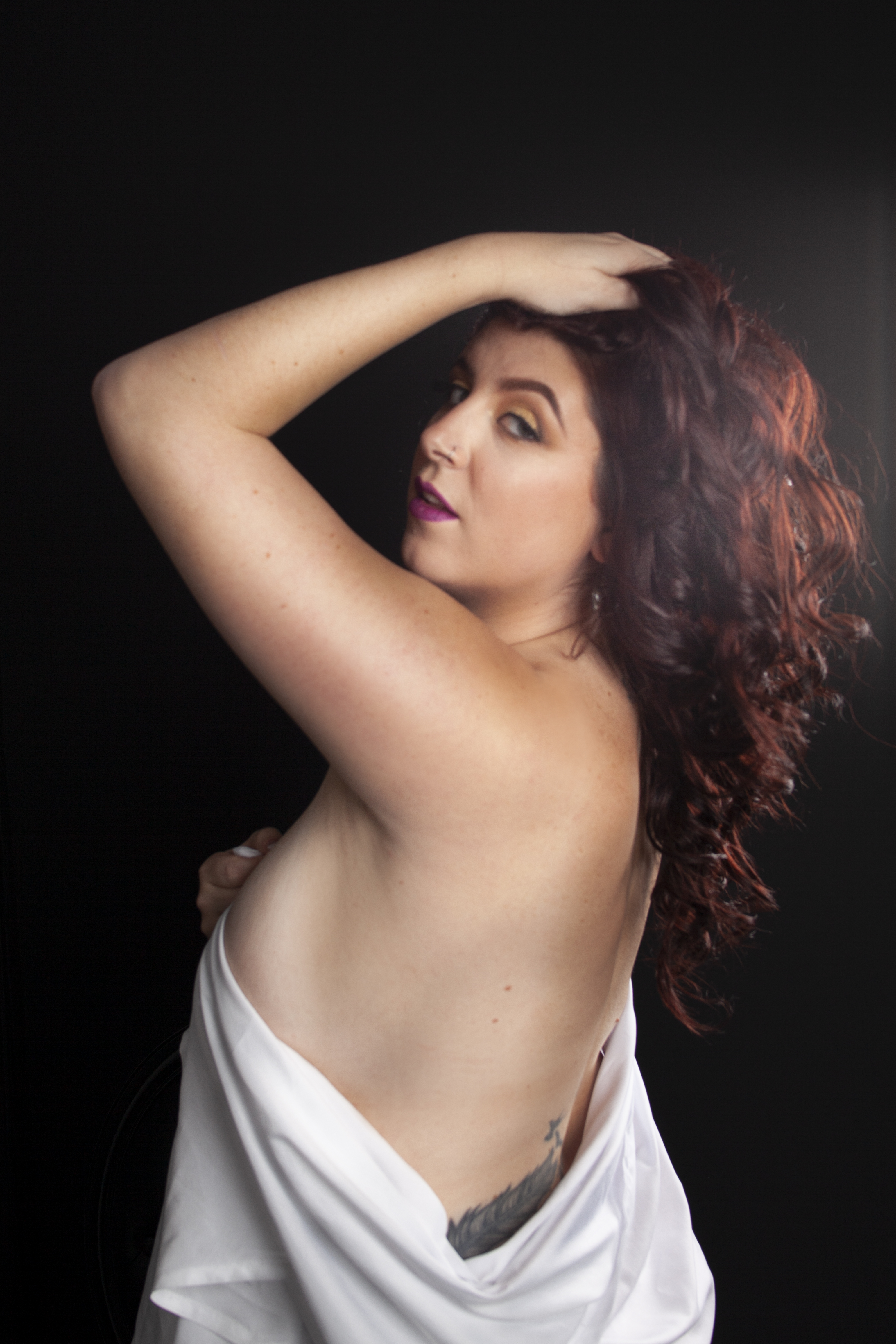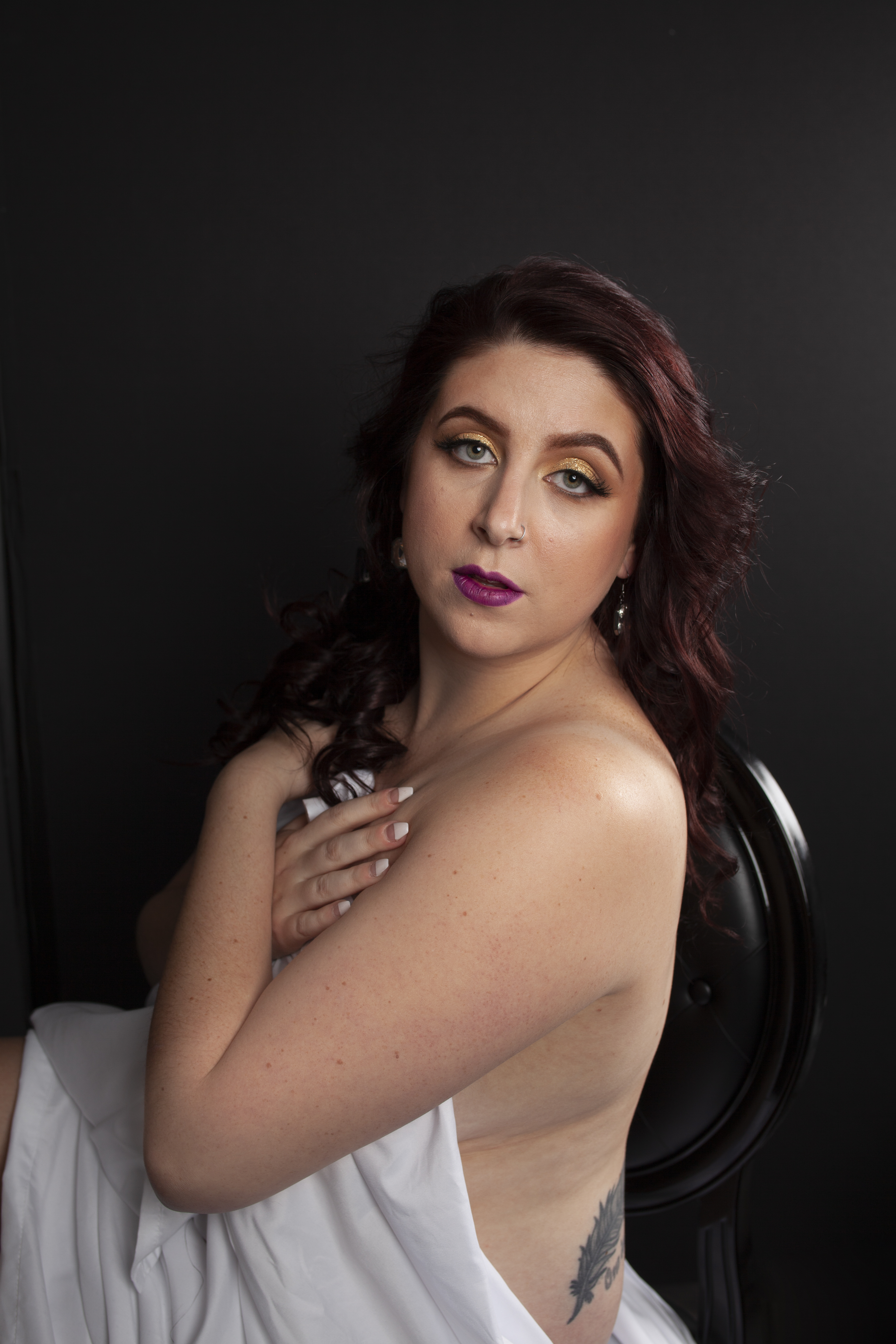 We are bringing to you our client’s favorite outfit! Just the sheet! There is nothing sexier than a woman wrapped in a satin sheet. The best part is you don’t have to purchase an outfit. Choose from our mirrored wall with a chaise or a black backdrop.